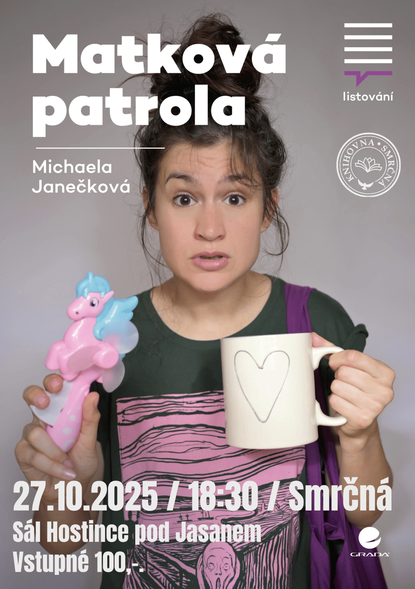 Vstupenky je možné koupit v předprodeji v Knihovně Smrčná nebo na Poště Parter.
