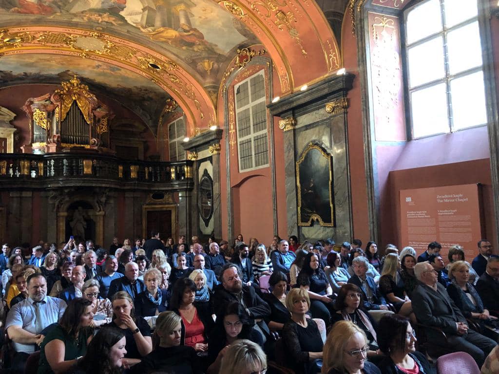 V září jsme pak poštou obdrželi pozvánky na slavnostní vyhlašování výsledků soutěže. Do Zrcadlové kaple pražského Klementina, které je také sídlem Národní knihovny ČR jsme vyrazili spolu s panem starostou. Do publika zasedla také naše metodička paní Irena Brezovic a ředitelka Krajské knihovny Vysočiny Jitka Hladíková.